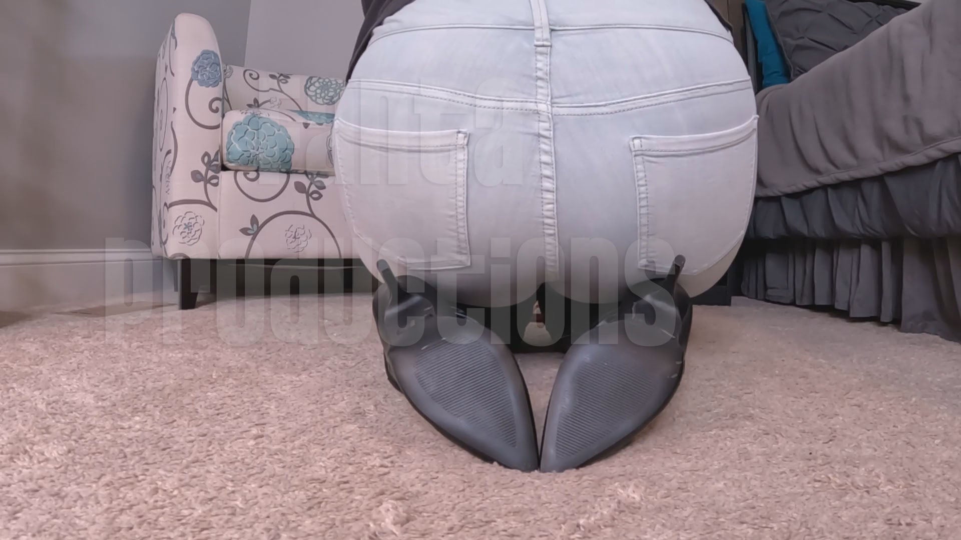 Here's another video of me showing off my big butt in 3 different camera angles. This time I'm wearing a pair of light-colored, tight skinny jeans with black stiletto over-the-knee boots.